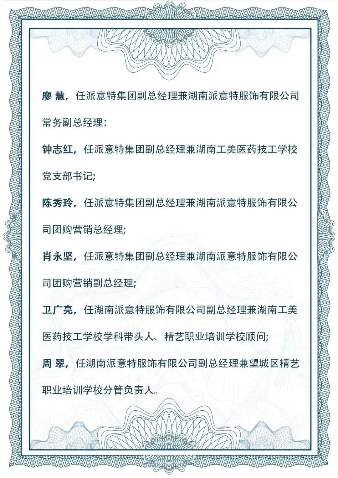 湖南派意特服飾有限公司創(chuàng)立于1993年,注冊資本2.3億元,是一家集設計、研發(fā)、生產(chǎn)、銷售、產(chǎn)教融合為一體的現(xiàn)代化服裝企業(yè)。 是中國包括公安部、最高檢、最高法、國家林業(yè)草原局、中國鐵路集團、中國郵政、中國聯(lián)通、中國郵儲銀行等十大部委行業(yè)職業(yè)裝入圍生產(chǎn)企業(yè)。 凝三十年制衣功力,傾情為您定制一件好衣服,公司應用數(shù)字化、智能化技術,建成億級版型大數(shù)據(jù)庫,擁有數(shù)百名從業(yè)超10年的"藍鉆技師。 憑借優(yōu)秀的柔性定制生產(chǎn)能力和良好的口碑成為全國近300家定制品牌的定制生產(chǎn)供應鏈。